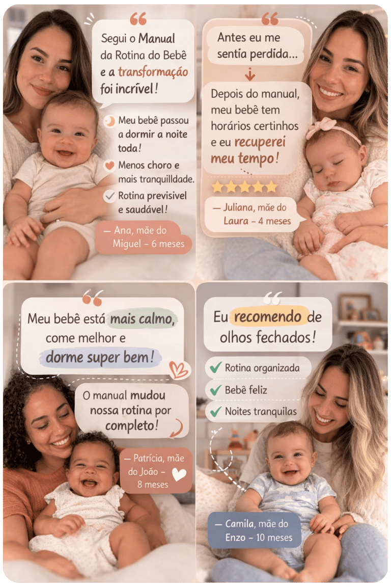 Depois de aplicar isso na prática e ajudar centenas de mães, reuni tudo no Manual da Rotina do Bebê para tornar esse processo muito mais simples para outras famílias.